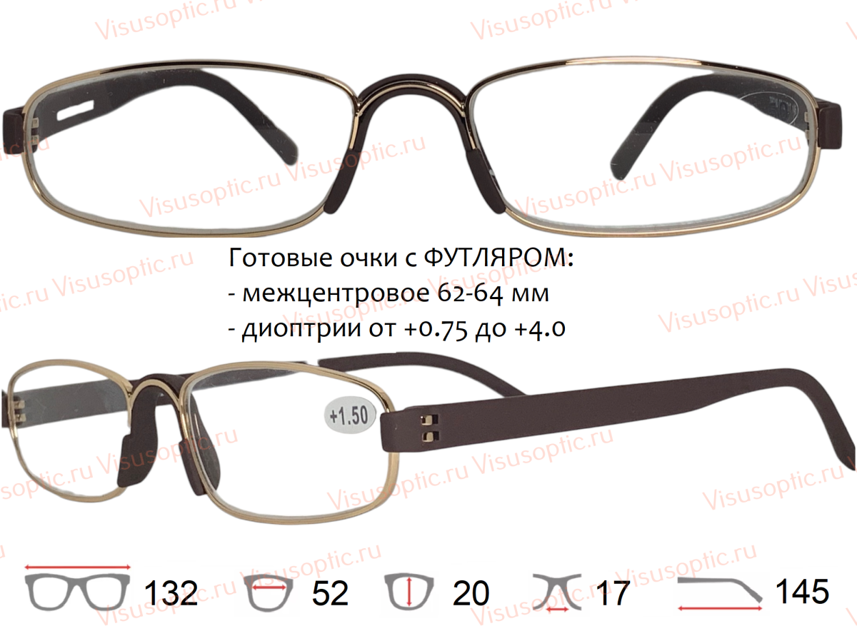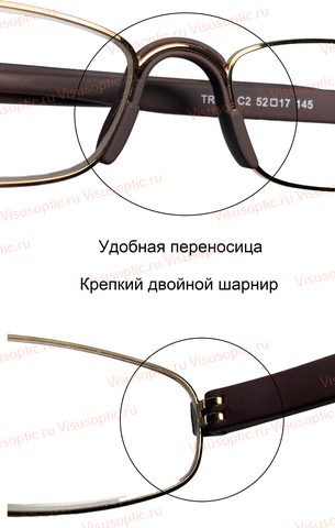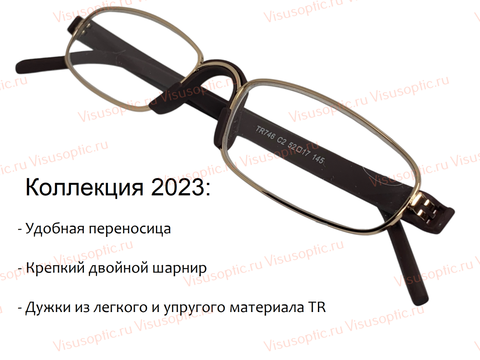 Готовые очки TR746 C2 лекторские для зрения. Очки для чтения с футляром коричневые